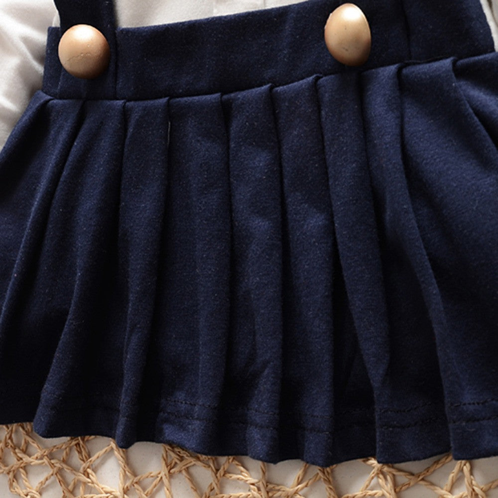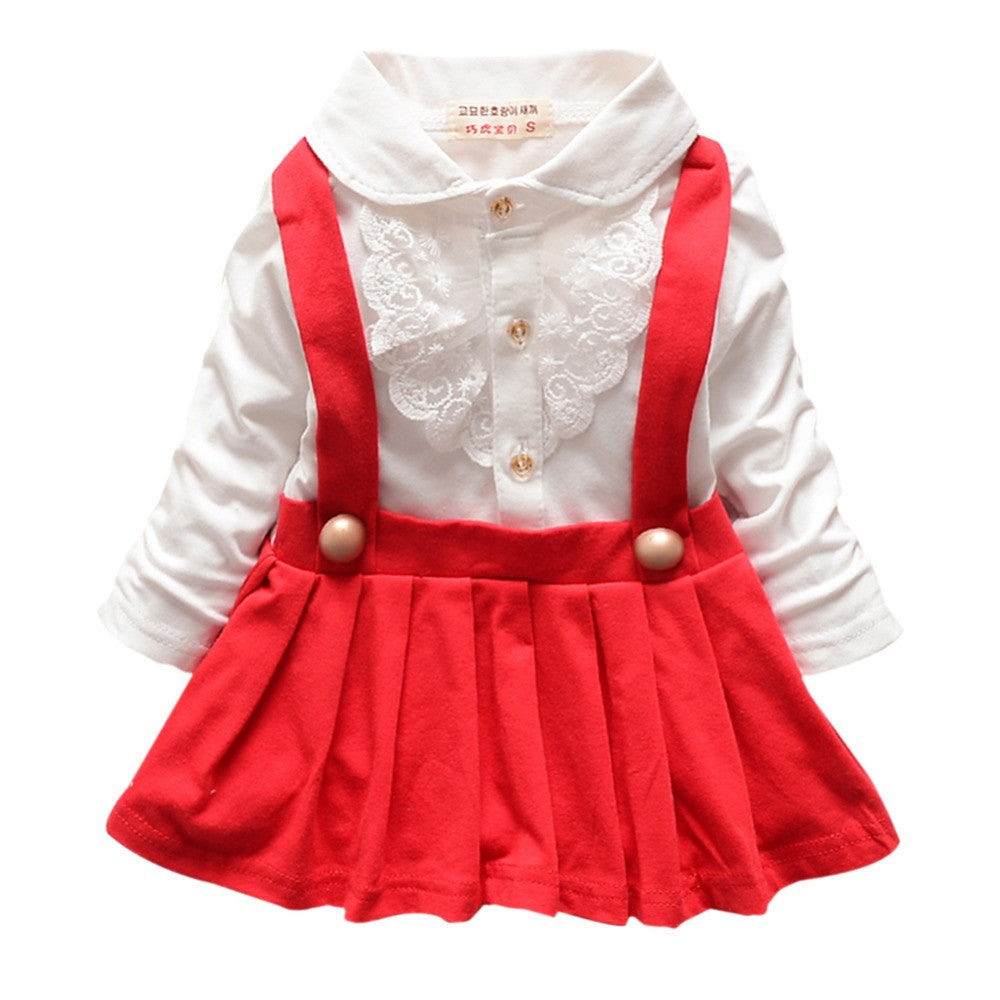1~5 years kids girls suspendercotton dress long sleeve lace floral tops baby party dresses J4U66
