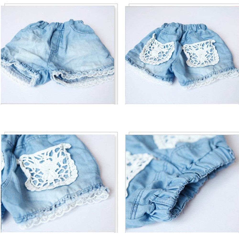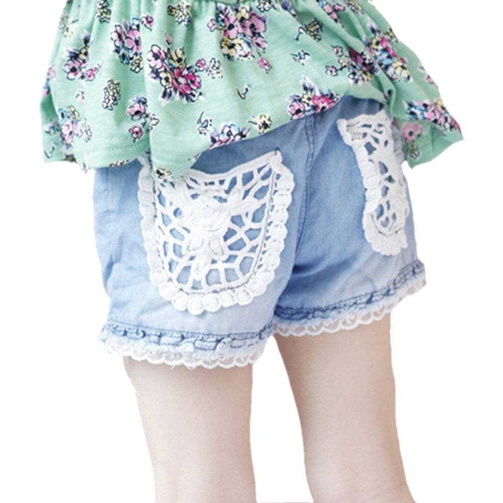 1~ years kids children girls shorts jeans lace pocket demin jeans J4U66