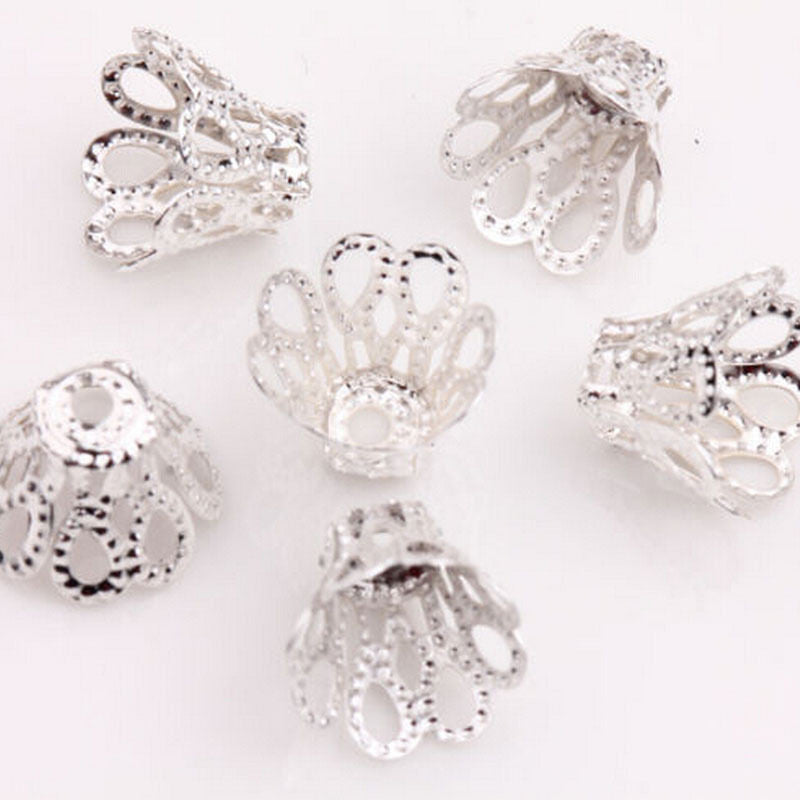100 Pcs Silver Plated Flower Bead Caps Findings Filigree Flower Cup Shape 7mm Silver Bead Caps For Diy Jewelry Making J4U66