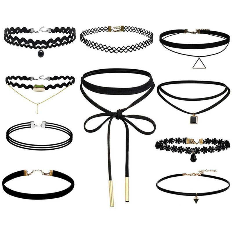 10Pcs Black Gothic Punk Velvet Tattoo Lace Choker Necklace Long Pendant Jewelry Women Collar Chocker J4U66