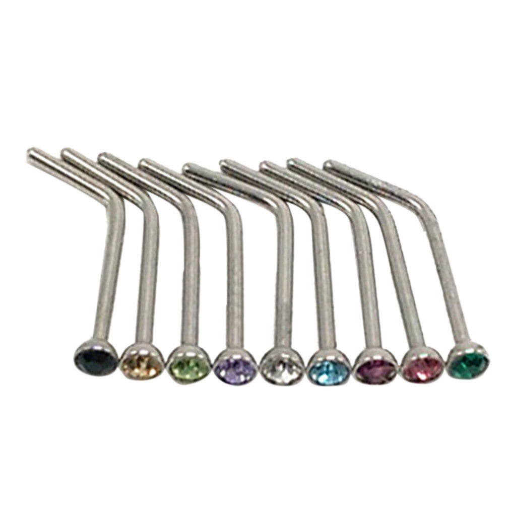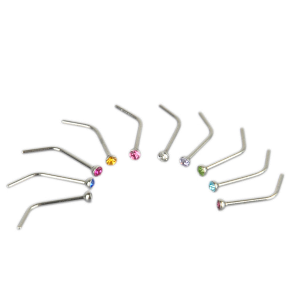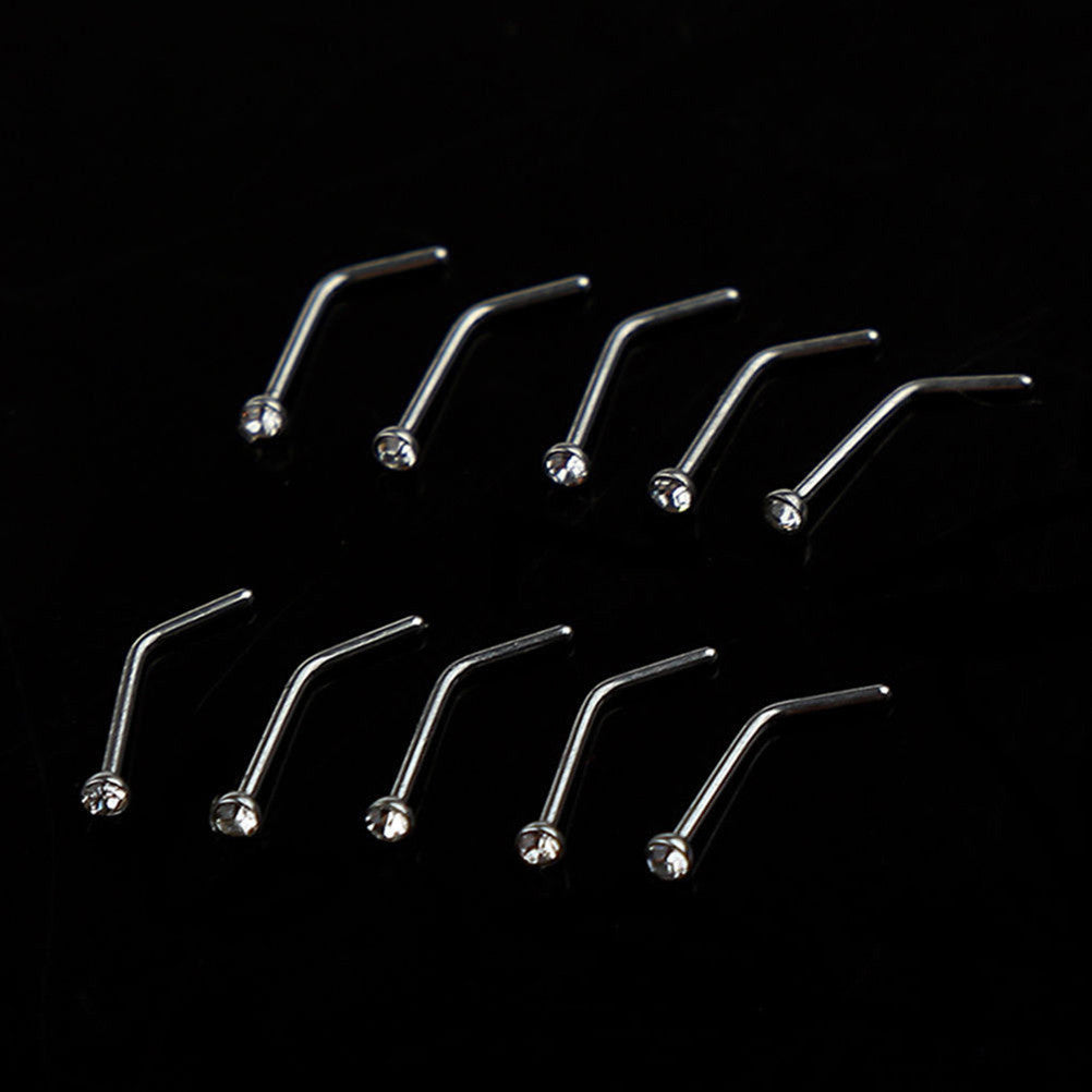 10Pcs Rhinestone Stainless Steel Screw Nose Hoop Ring Stud Body Piercing Pretty J4U66
