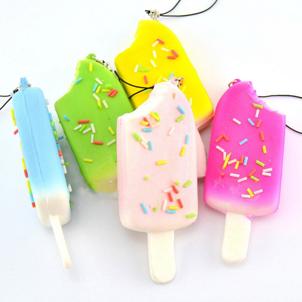 1P Squishy Bread Chocolate Sprinkles Popsicle Phone Straps Soft Scented Charms J4U66
