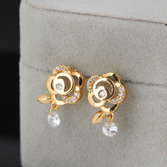 1paircrystal zircon earring 18k gold plated flower earring women earings stud earring jewelry J4U66