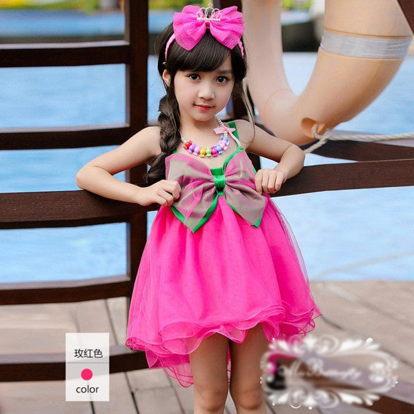 2-7Y Baby Girl Kids Big Bow Princess Dresses Suspender Tulle Holiday Party Tutu Dress J4U66