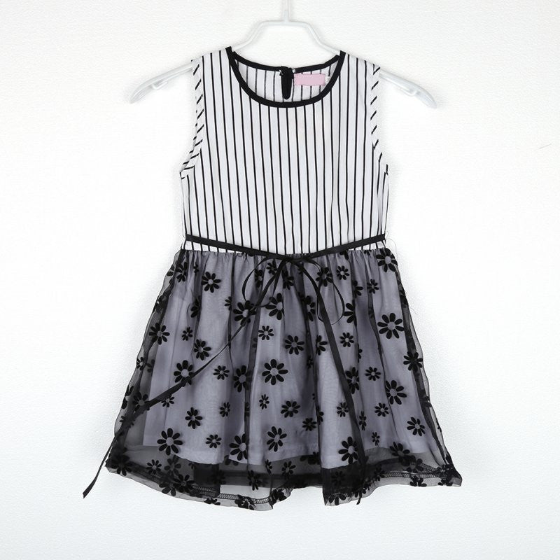 2-7Y Baby Girls Kids Puffed Dress Sleeveless Party Princess Dot Stripe Tutu Dresses J4U66