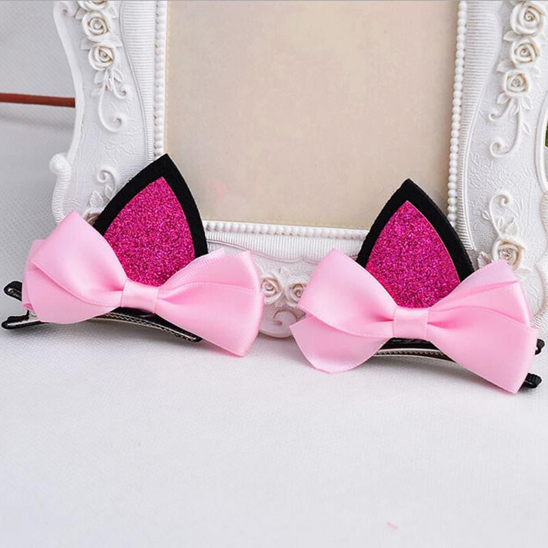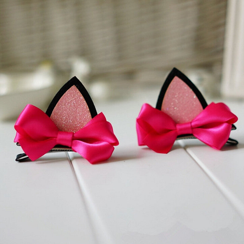 2Pcs children baby girls flower cat ears hairpin hair accessories clip hairpins barrettes headwear J4U66