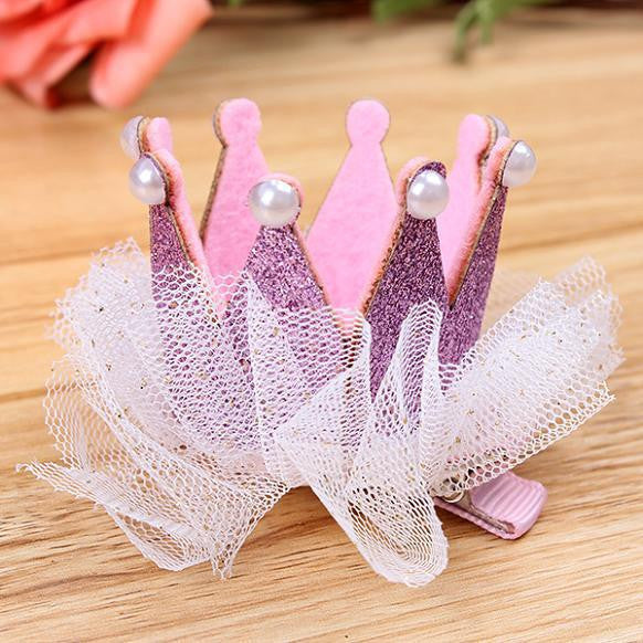 2pcs Cute Baby Kids Girls Princess Crown Hair Band Headband Birds Hair Wear Hair Clips Ribbon Headdress 5 Colors J4U66