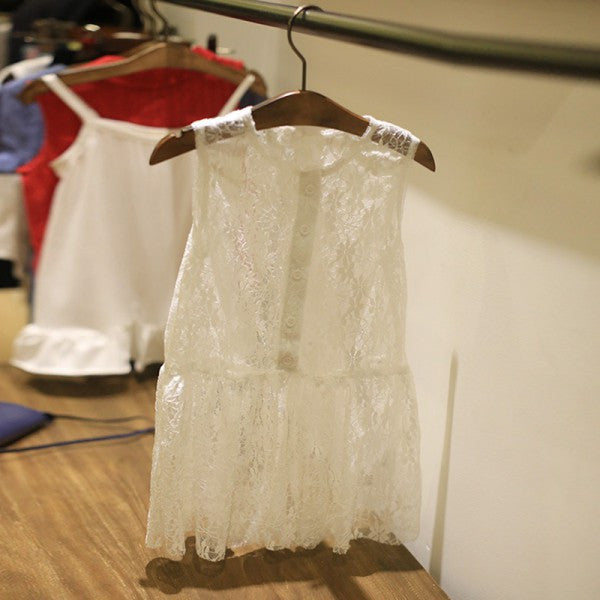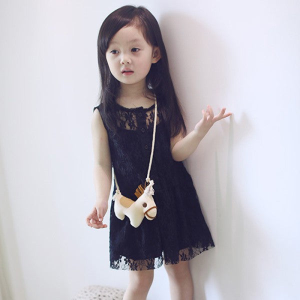 2pcs kids girls sleeveless dress lace floral braces dress sundress costume 2~7 yearsear J4U66