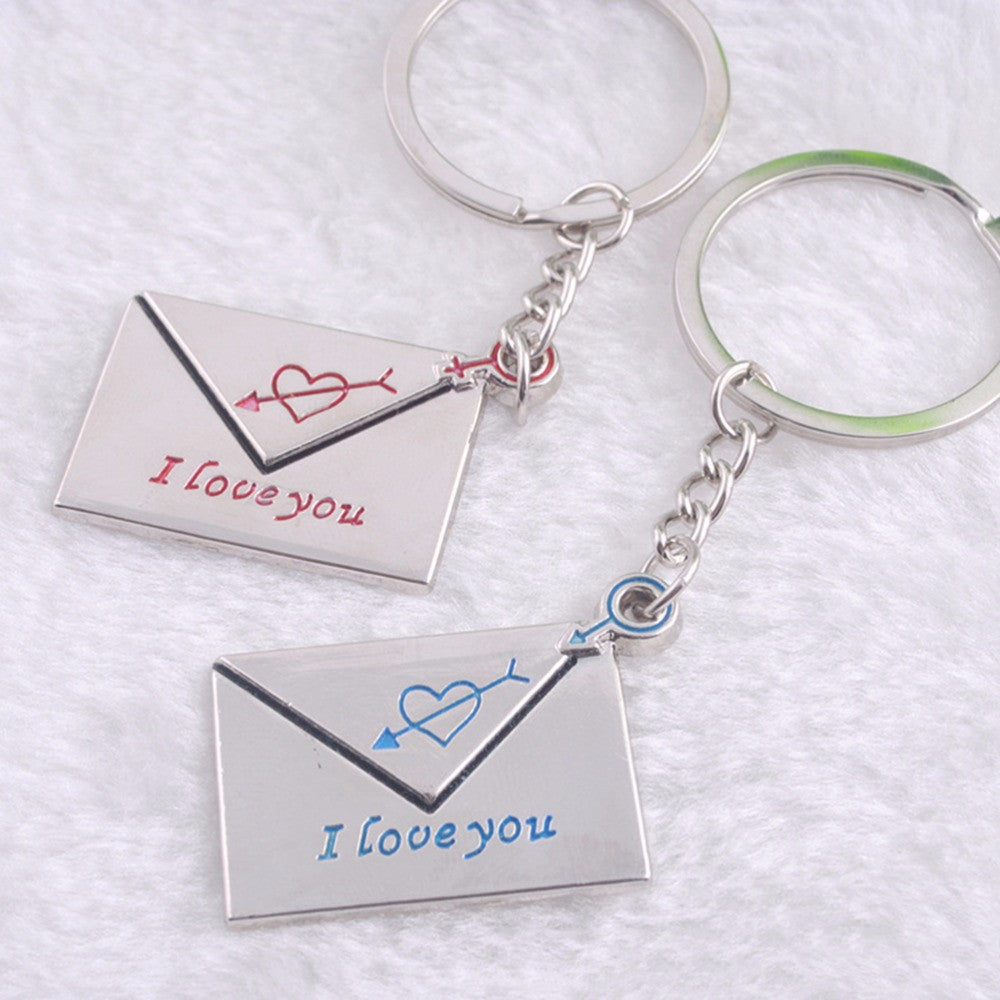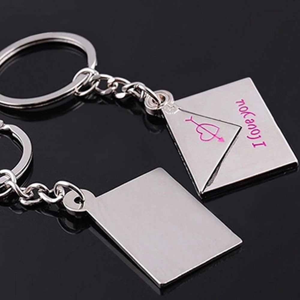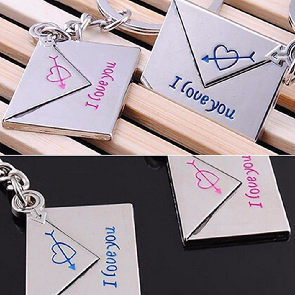 2pcs Lover's Keyrings Envelope "I love you" Engraved Cupid's Arrow Heart Keychains J4U66