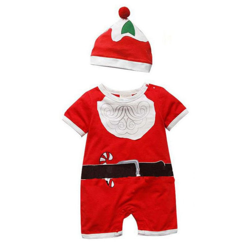 2pcss Baby Boys Girls Xmas Santa Claus Clothing Set Short Sleeve Romper Jumpsuit + Hat Outfit Clothes Sets Christmas Gifts J4U66