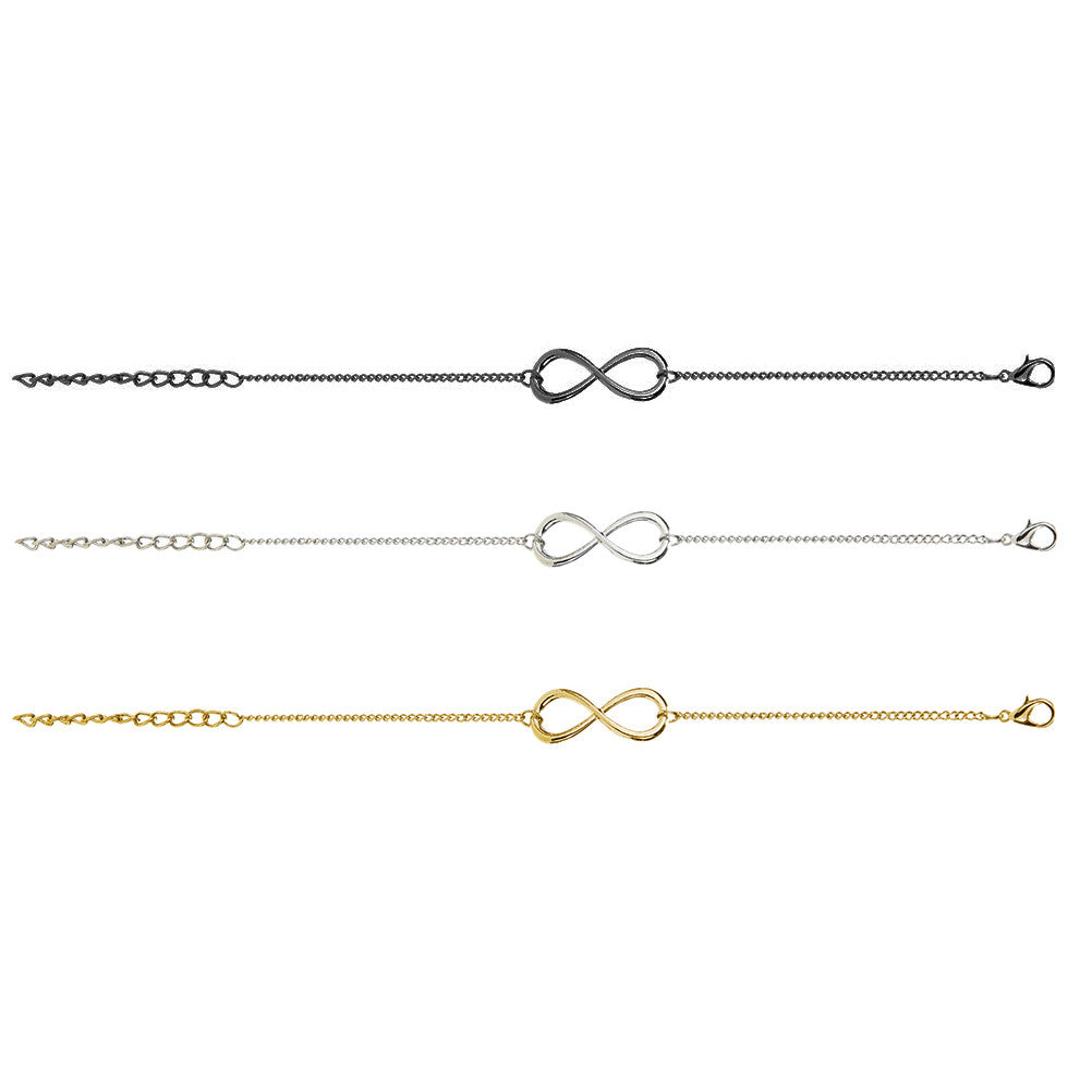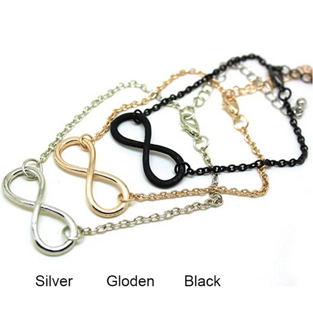 3 Colour Popular Gold/Silver /Black Cross Infinity Chain Bracelets Bangles Jewelry For Women J4U66