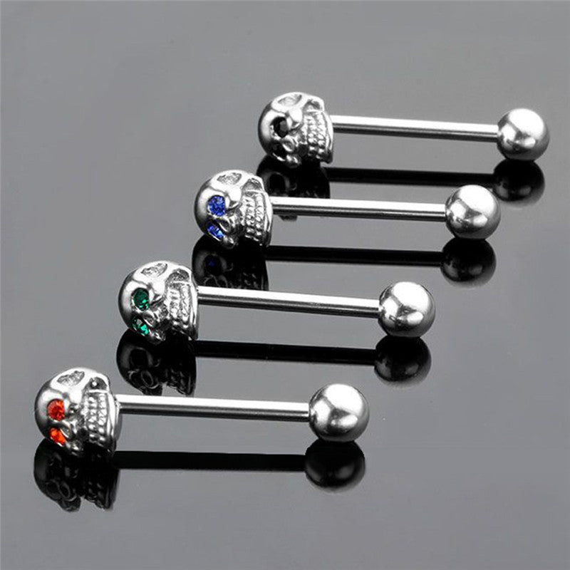4Pcs 316L Stainless Steel CZ Gem Punk Skull Tongue Ring Barbell Piercing Body Jewelry J4U66