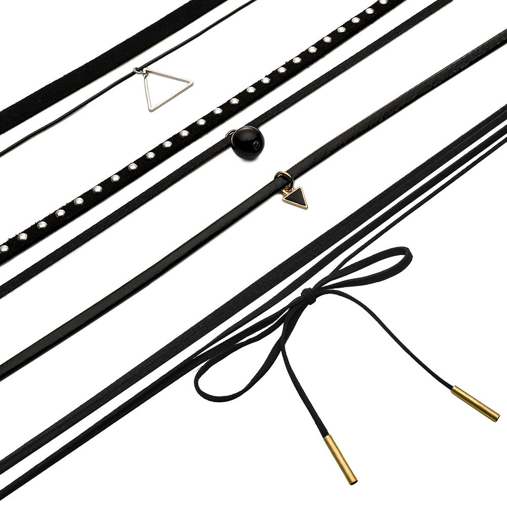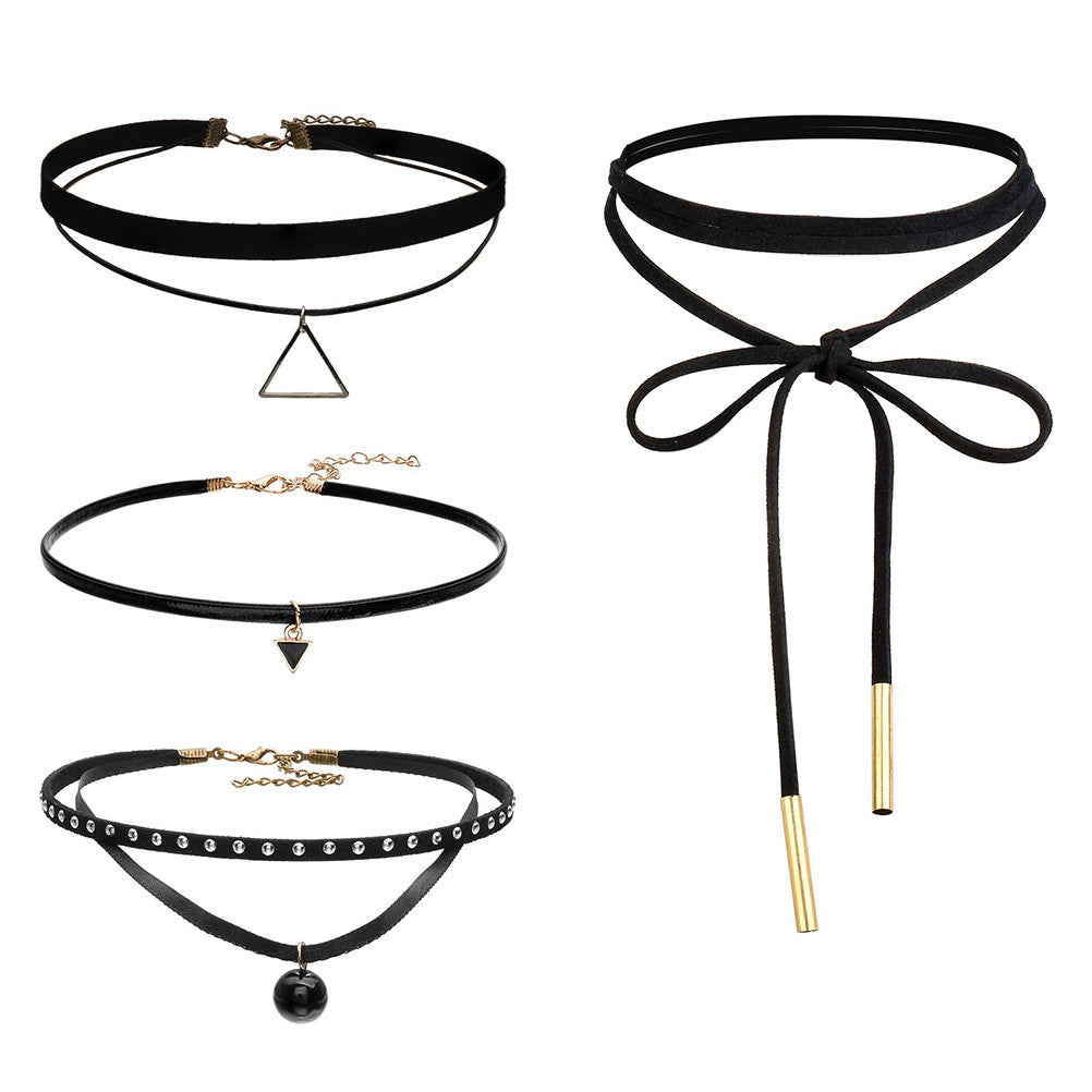 4pcs jewelry black leather bow Tassel choker DIY necklace gift for women girl J4U66