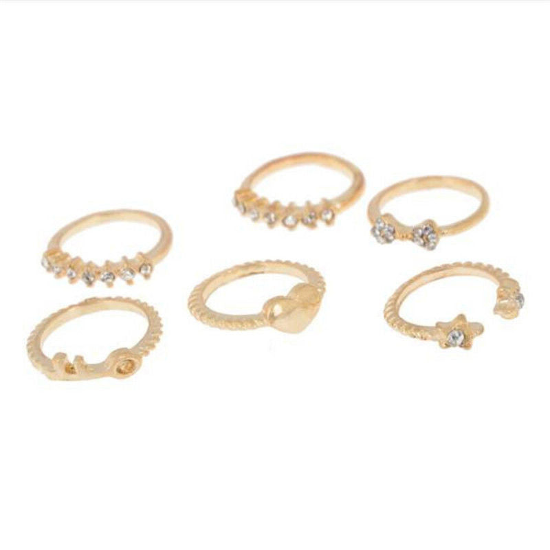 6pc Gold Sliver finger Knuckle Rings For Women Sweet Rhinestone Star Bowknot Heart Ring Set J4U66