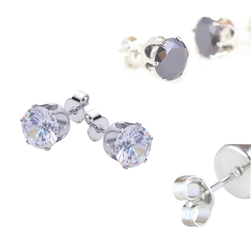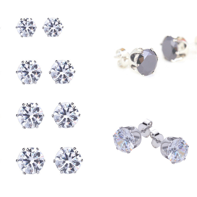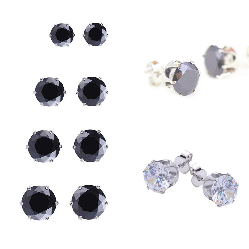 8Pair Stainless Steel Mens Womens Stud Earrings Black Round Cubic Zirconia Inlaid J4U66