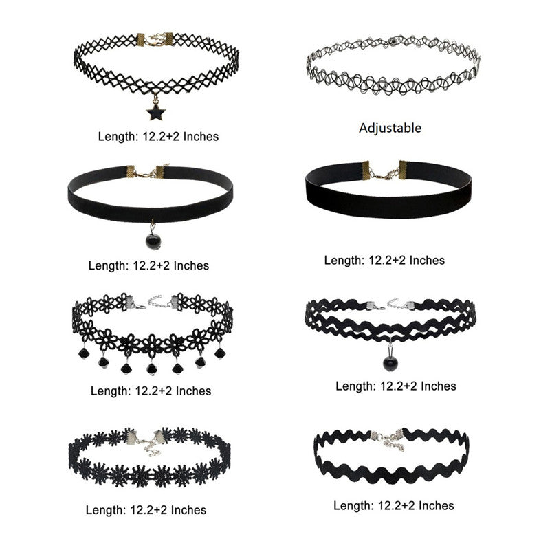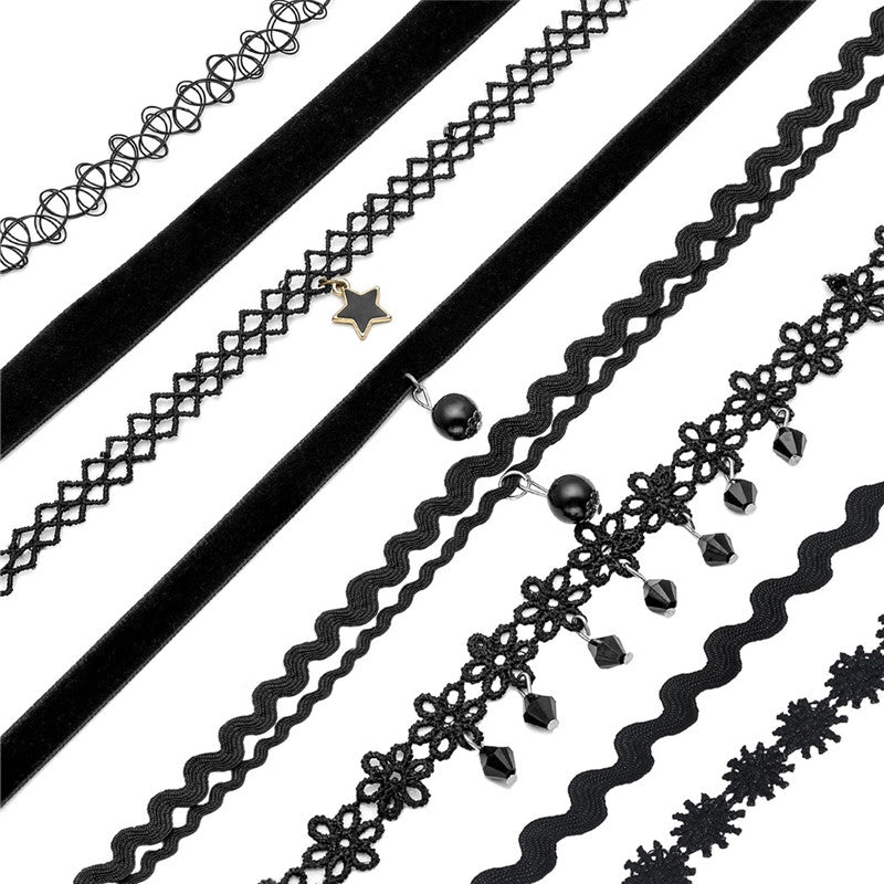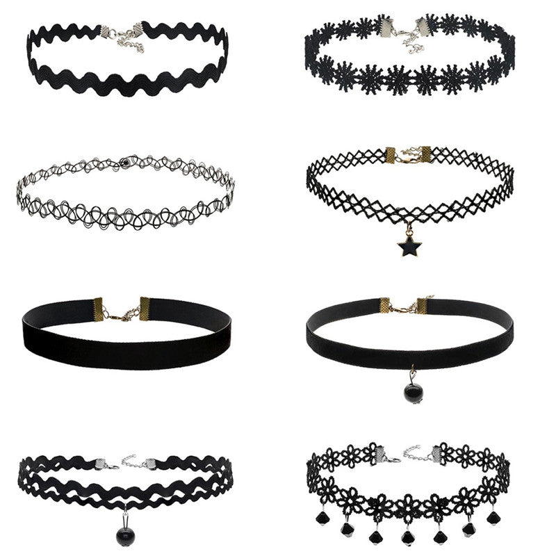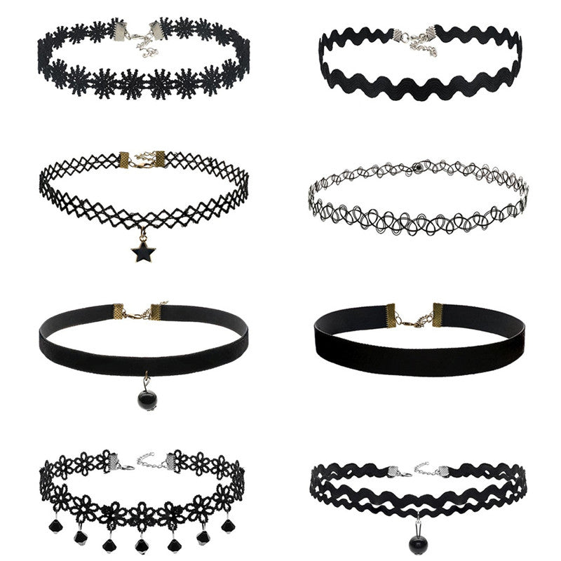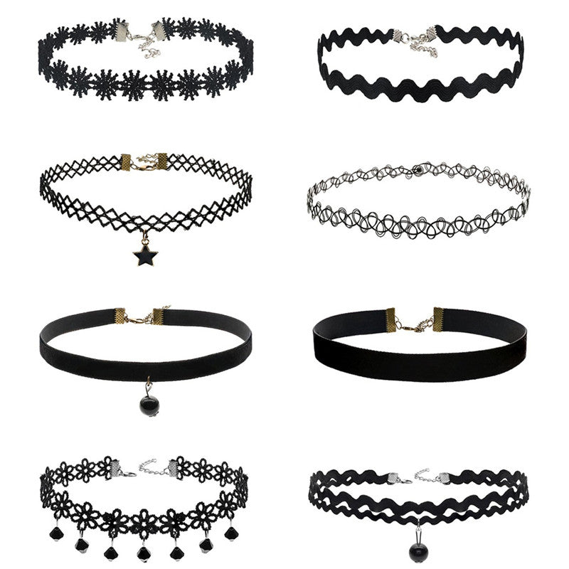 8Pcs Sexy Gothic Punk Collar Necklace Velvet Tattoo Lace Choker With Star Pendant Jewelery For Women J4U66