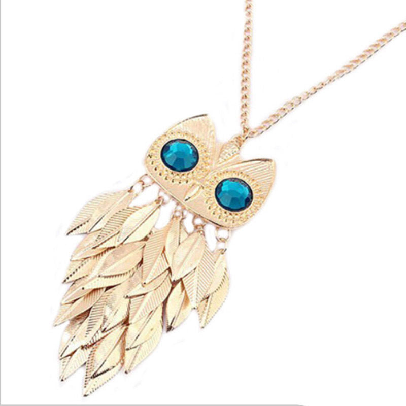 able Stylish Gold Plated Leaves Owl Charm Chain Long Women Pendant Necklace J4U66