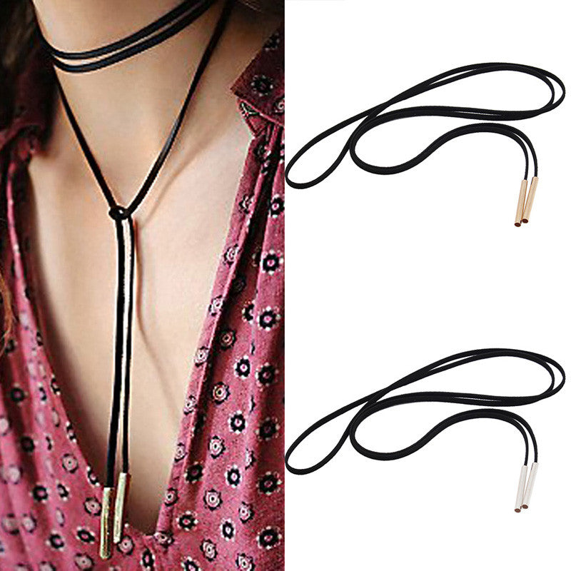 Adjustable Charm Bohemia Sexy Collier Femme 160cm Black Leather Choker Necklace JewelryJFY66