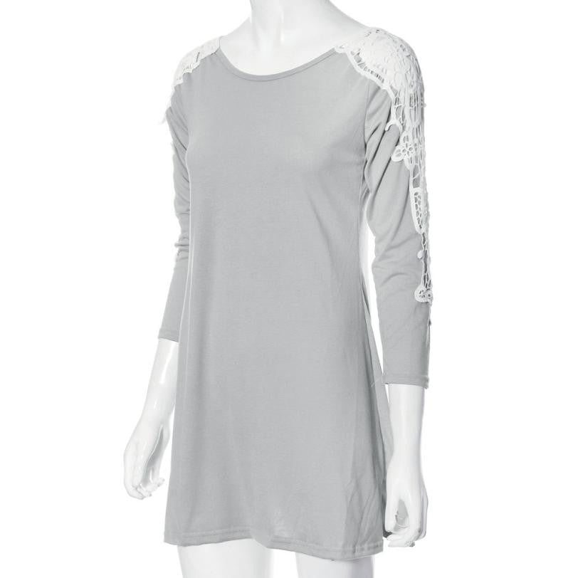 and Women Casual Lace Stitching Dress Three Quarter Sleeve Dress J4U66
