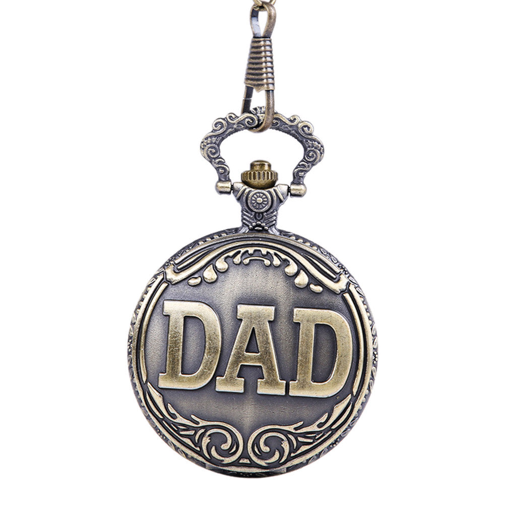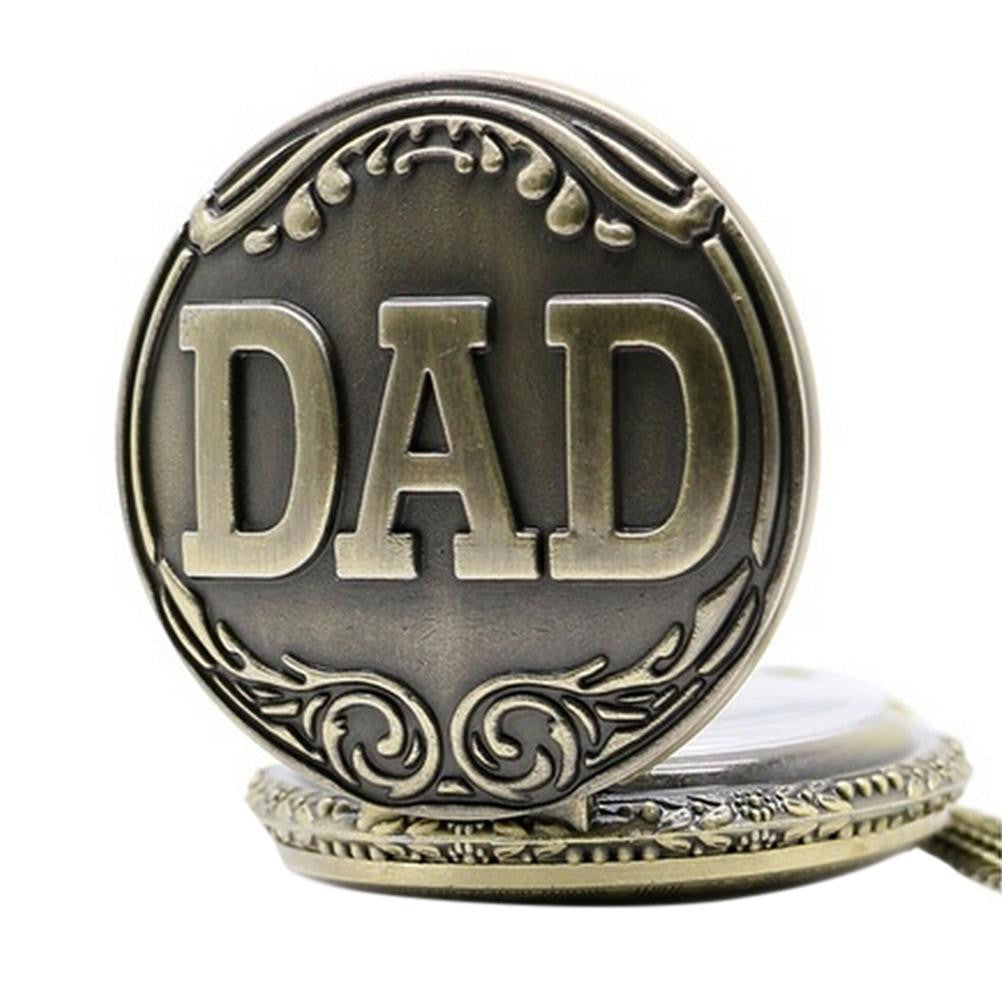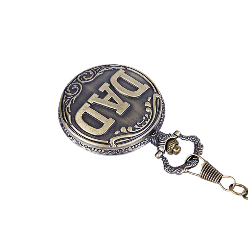 Antique Bronze Dad Pattern Quartz Pocket Watch/Pendant Chain Necklace Fob Watch Father's Day Gift J4U66