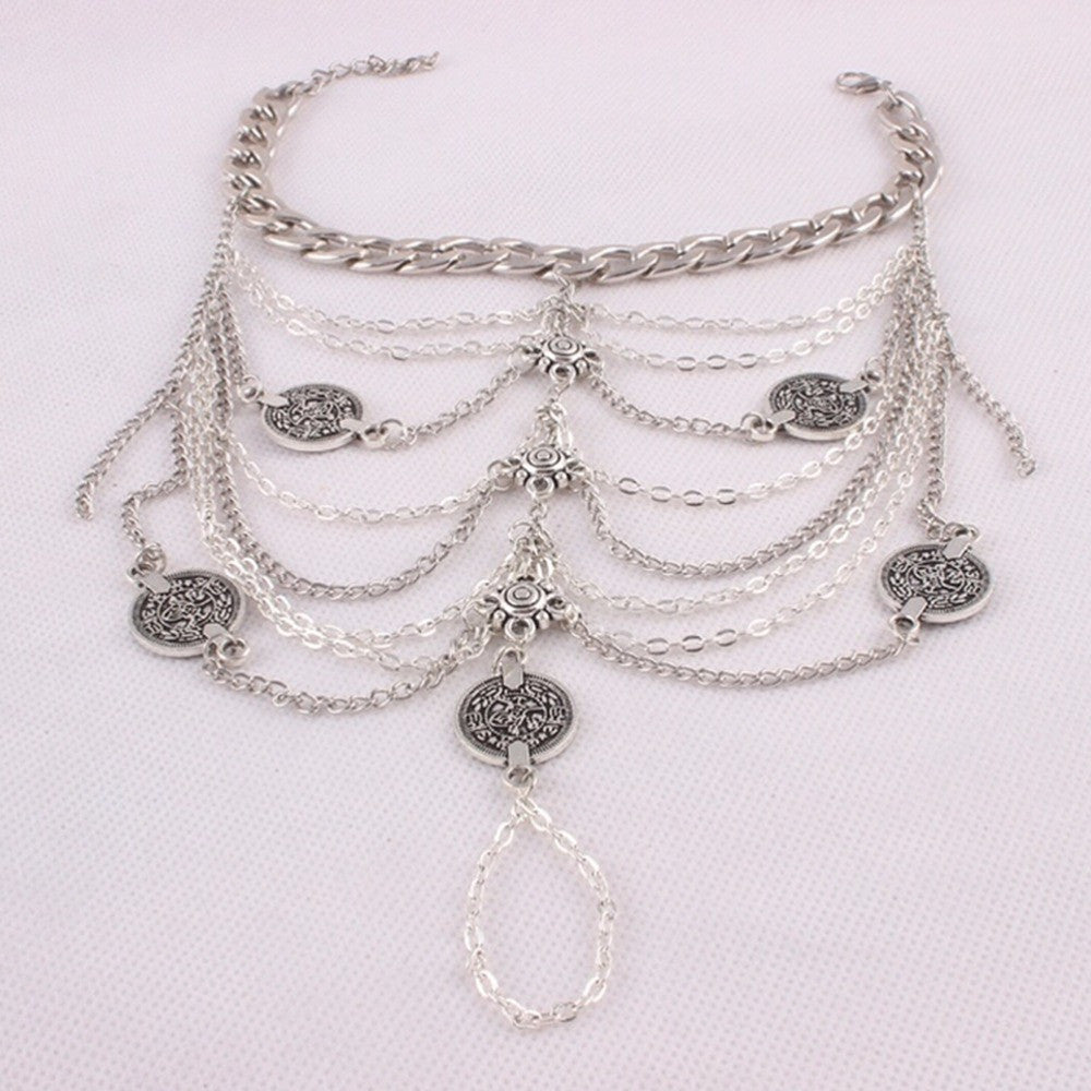 Antique Silver Anklet Coin Tassel Leg Bracelet For Women To Beach Ankle Chaine Women Foot Chain Anklets J4U66