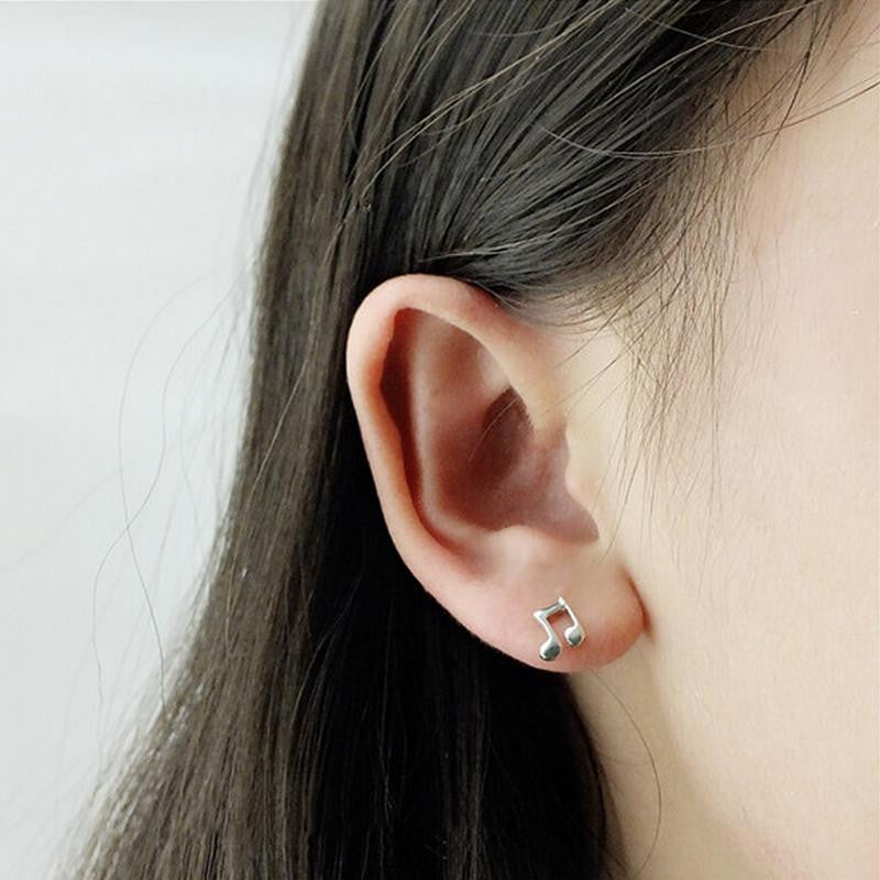 Artistic Gift Lovely Silver Plated Asymmetry Musical Note Shape Ear Stud Earrings J4U66