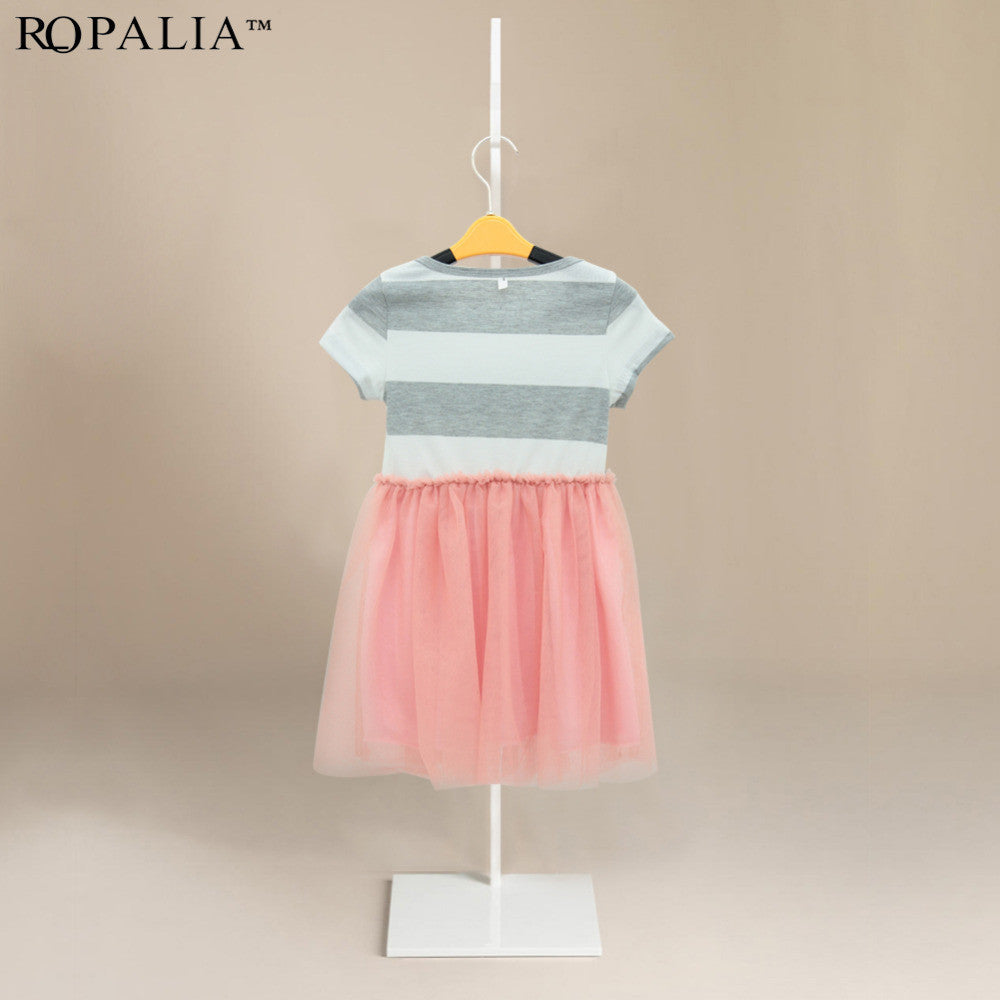 baby 2 10y girls short sleeve striped tops pleated mini dress princess dresses J4U66