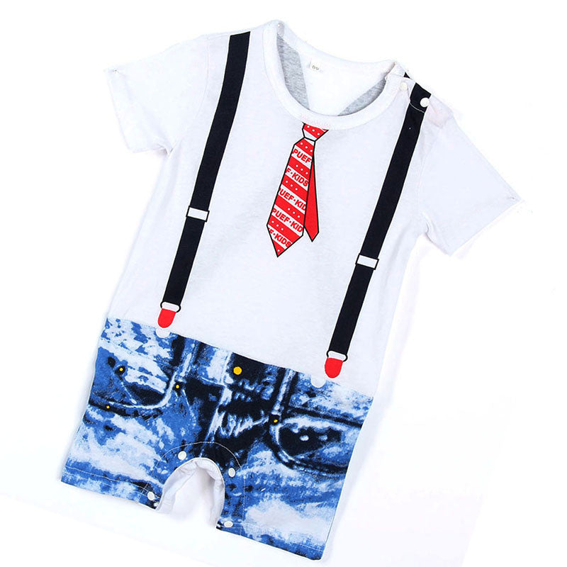 Baby Boys Short Sleeve Gentlemen Bodysuit Romper Suit Clothes J4U66