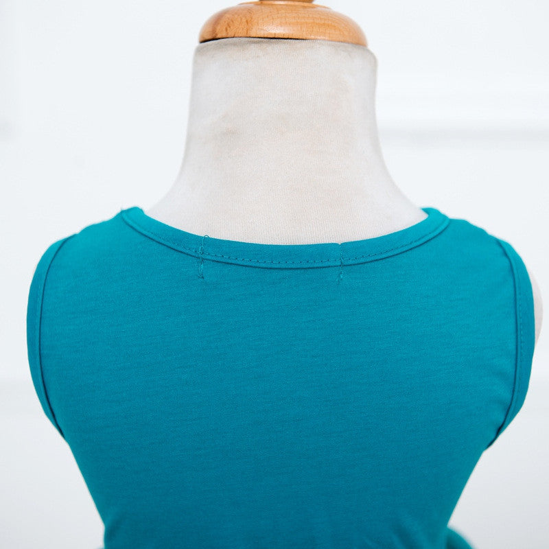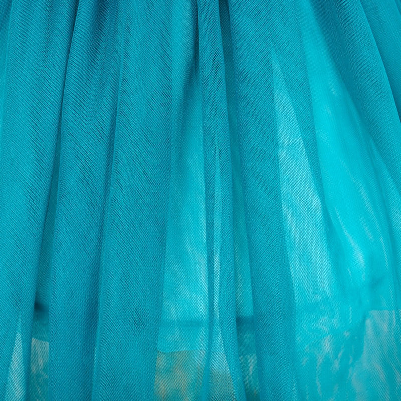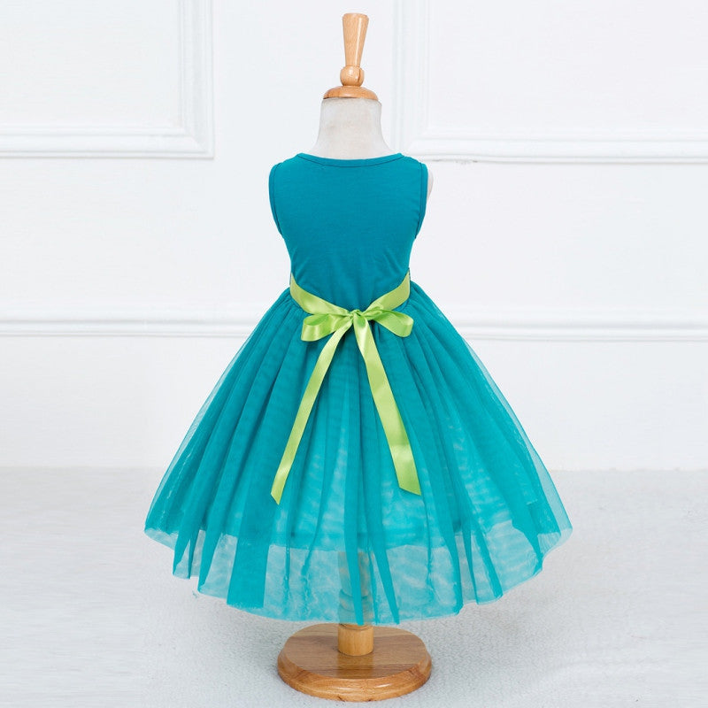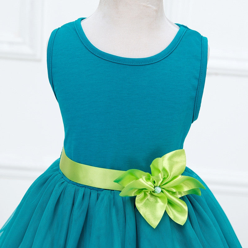 Baby Girl Princess Dress Dreamlike Lake Blue Sleeveless Green Floral Belt Dress Wedding Party Birthday Clothes J4U66