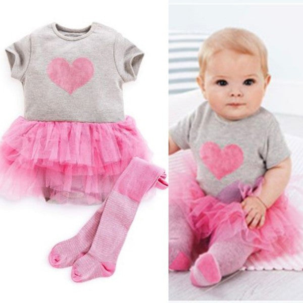 Baby Girls Toddler Puffy Tutu Dress Gauze Love Print Short Sleeve Dress Outfits Infant Clothing for  J4U66
