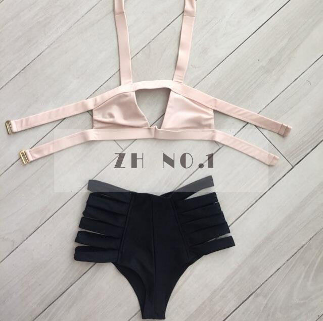 bandage bikini push up red bikini set beach wear retro geometric pattern swimwear female women swimsuit4 J4U66