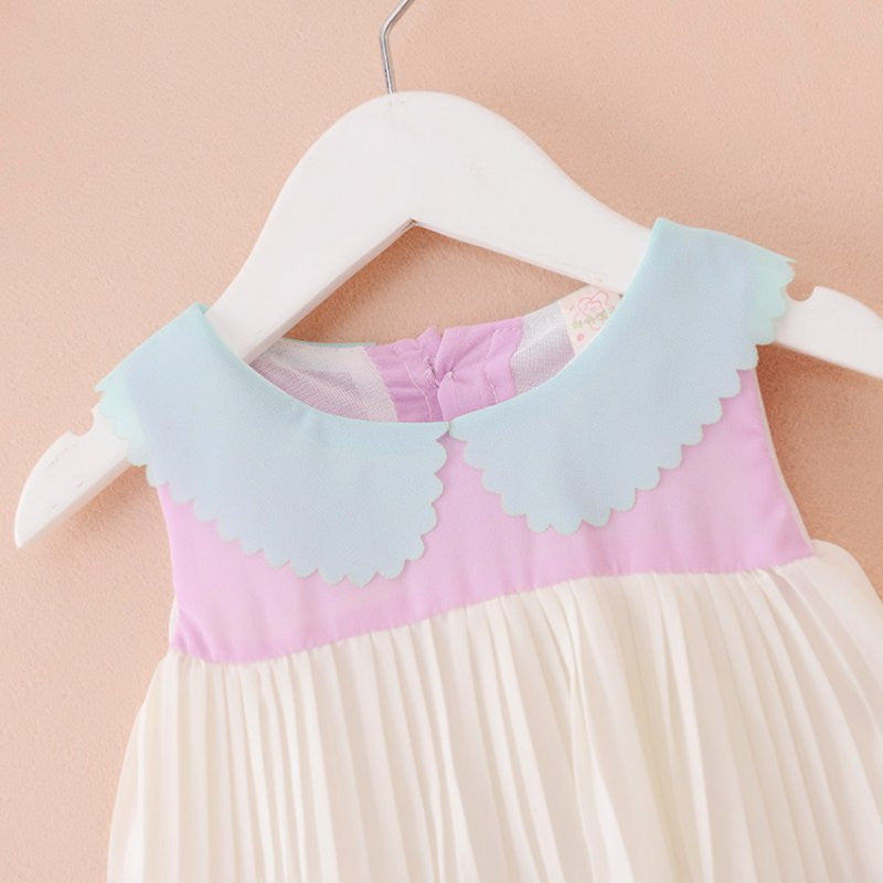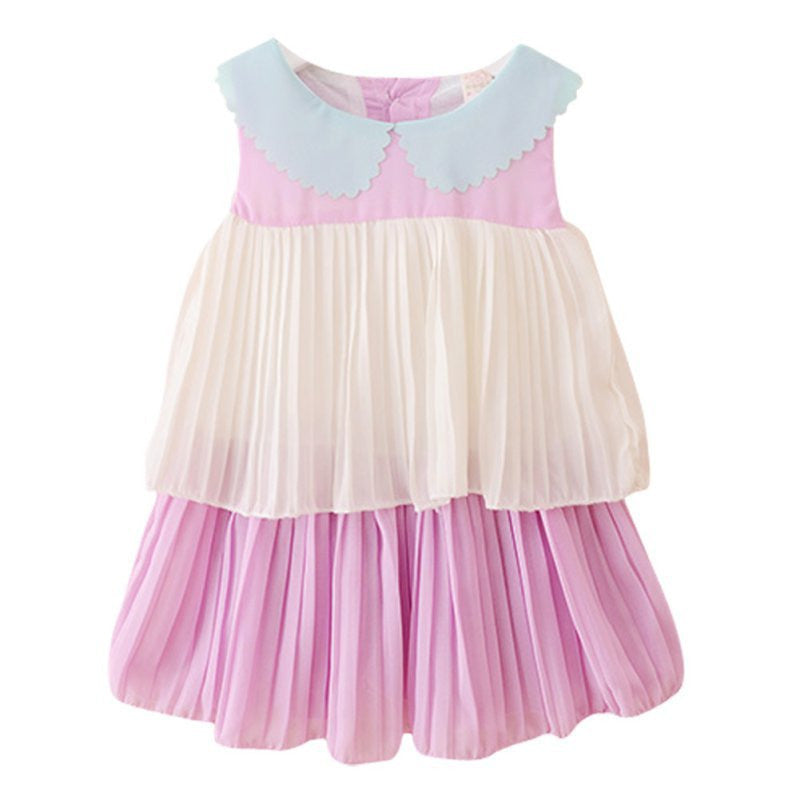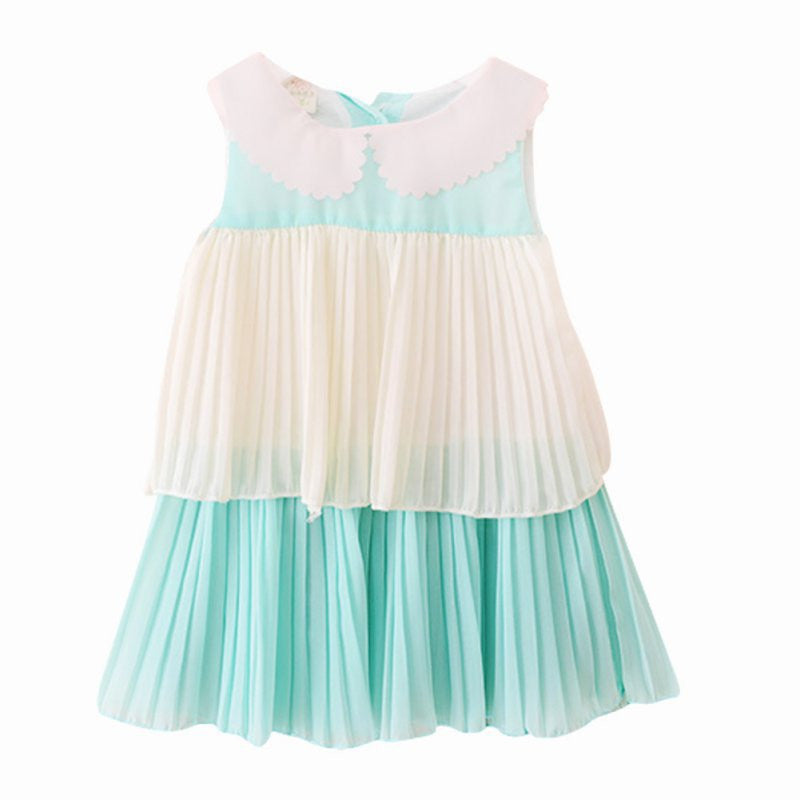 beach kid girl tutu dress lapel collar ruffle chiffon sundress dress J4U66