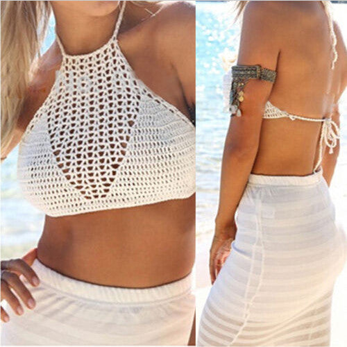 Beachwear Hollow Tank Crochet Bra Halter Vest Strap Crop Tops Super Sexy Women Tops White Black J4U66