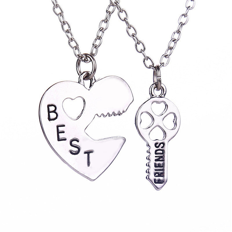 Best Friend Friendship Broken Heart Pendant Necklace Gifts For friends 2pc Sliver Heart Shape Necklaces J4U66