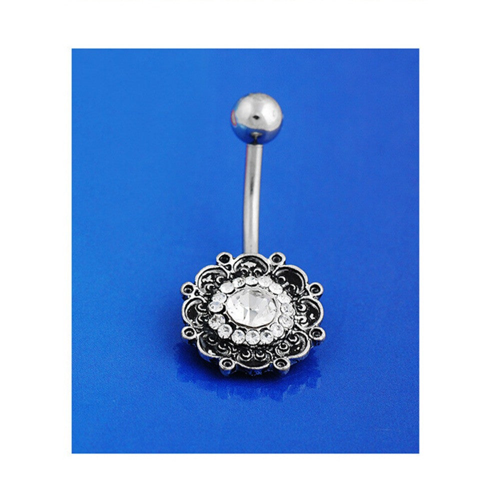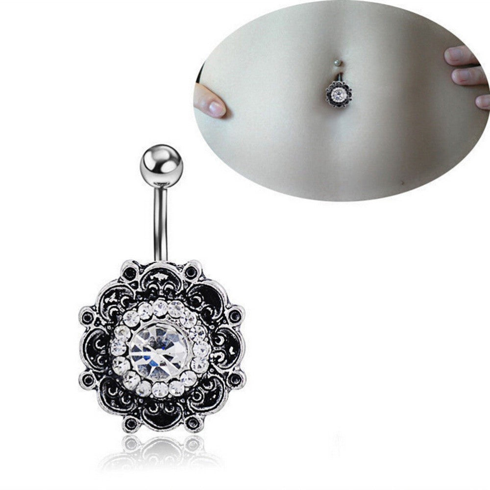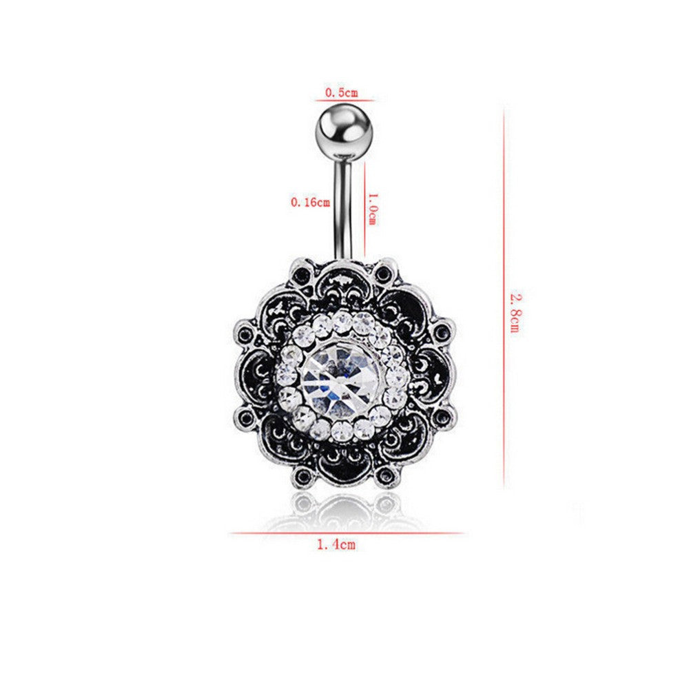 Black Crystal Flower Belly Button Navel Ring Bar Body Piercing Belly Button Rings Dangle J4U66