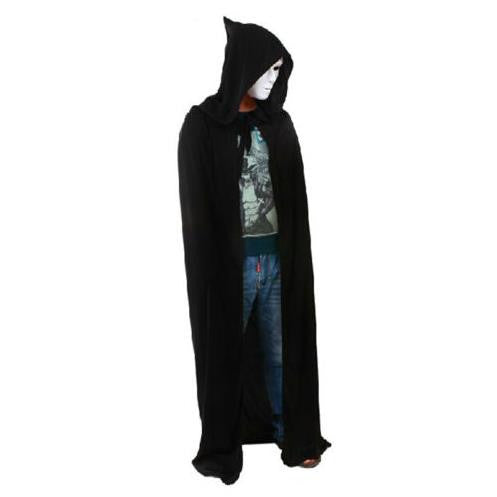 Black Halloween Costume Theater Prop Death Hoody Cloak Devil Long Tippet Cape J4U66