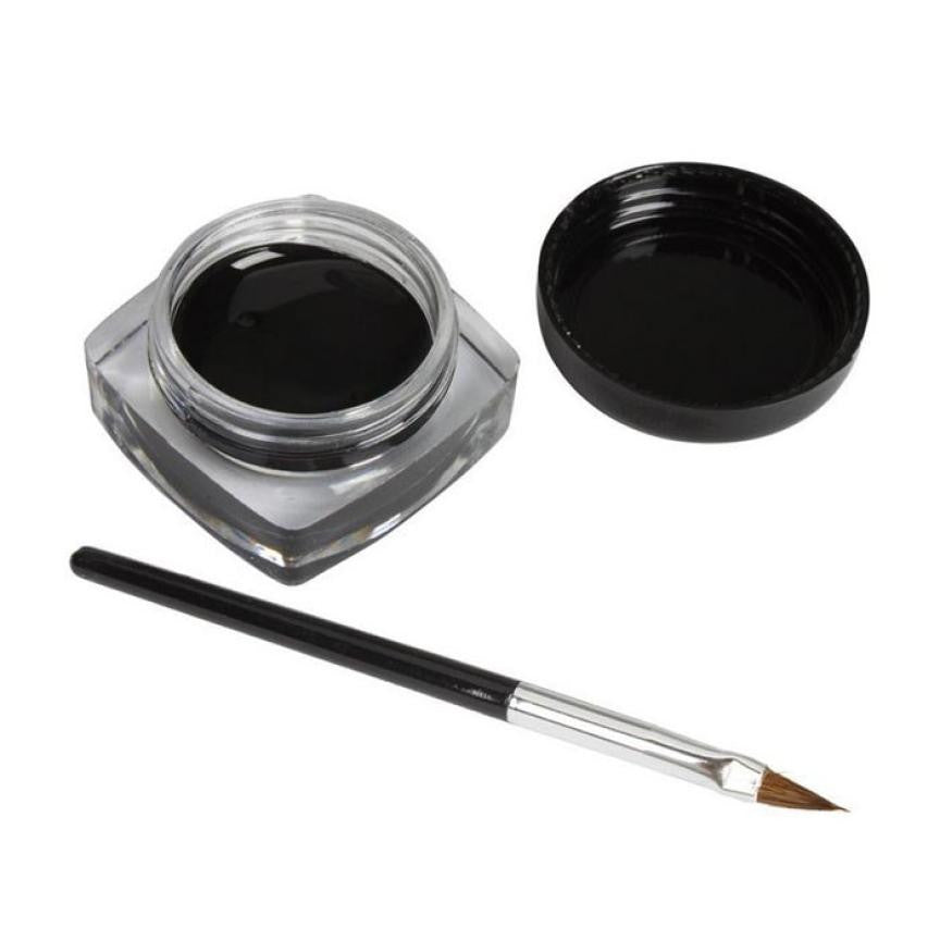 Black Mini Eyeliner Gel Cream Long-lastingt Eye Liner Eyeliner Gel Makeup Cosmetic Brush Makeup Set J4U66