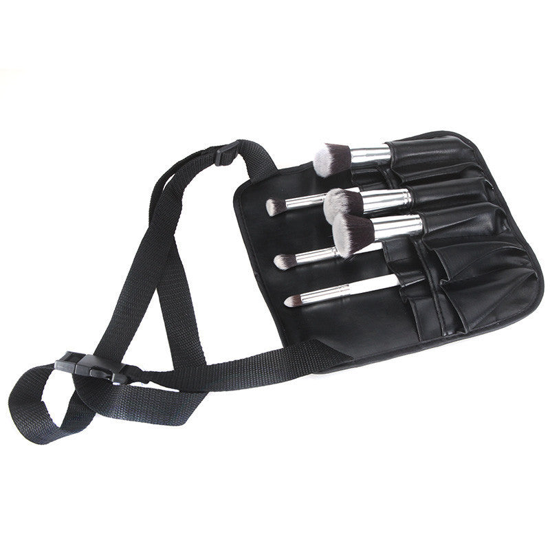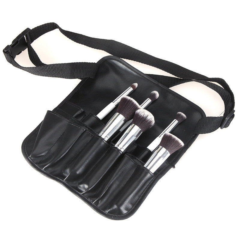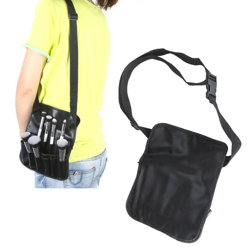 black pvc cosmetic makeup brush apron bag artist belt strap holder J4U66