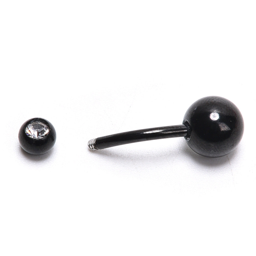 Black Titanium Rhinestone Barbell Navel Belly Button Bar Ring Body Piercing Curved Punk Earring Piercing J4U66