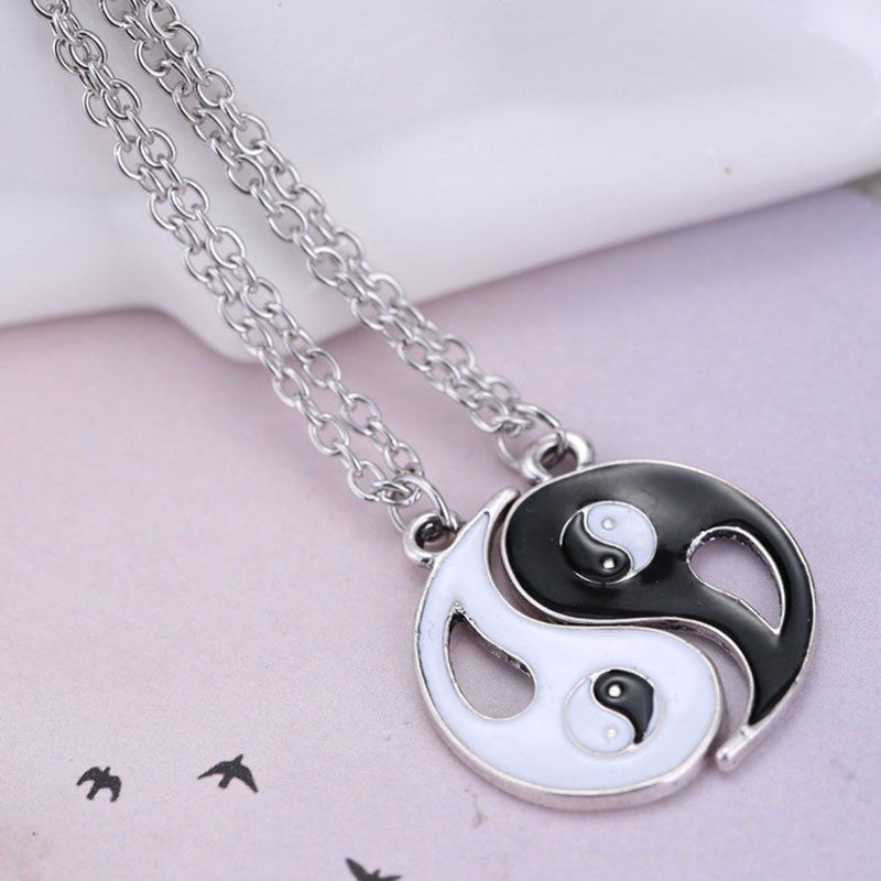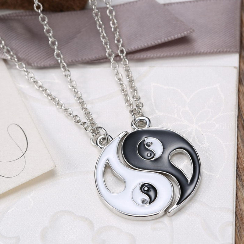 Black White Couple Sister Friend Friendship Jewelry Unique Personalized Gifts Yin Yang Pendant Necklace J4U66