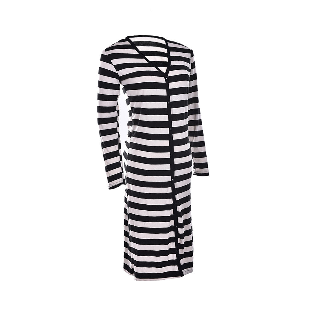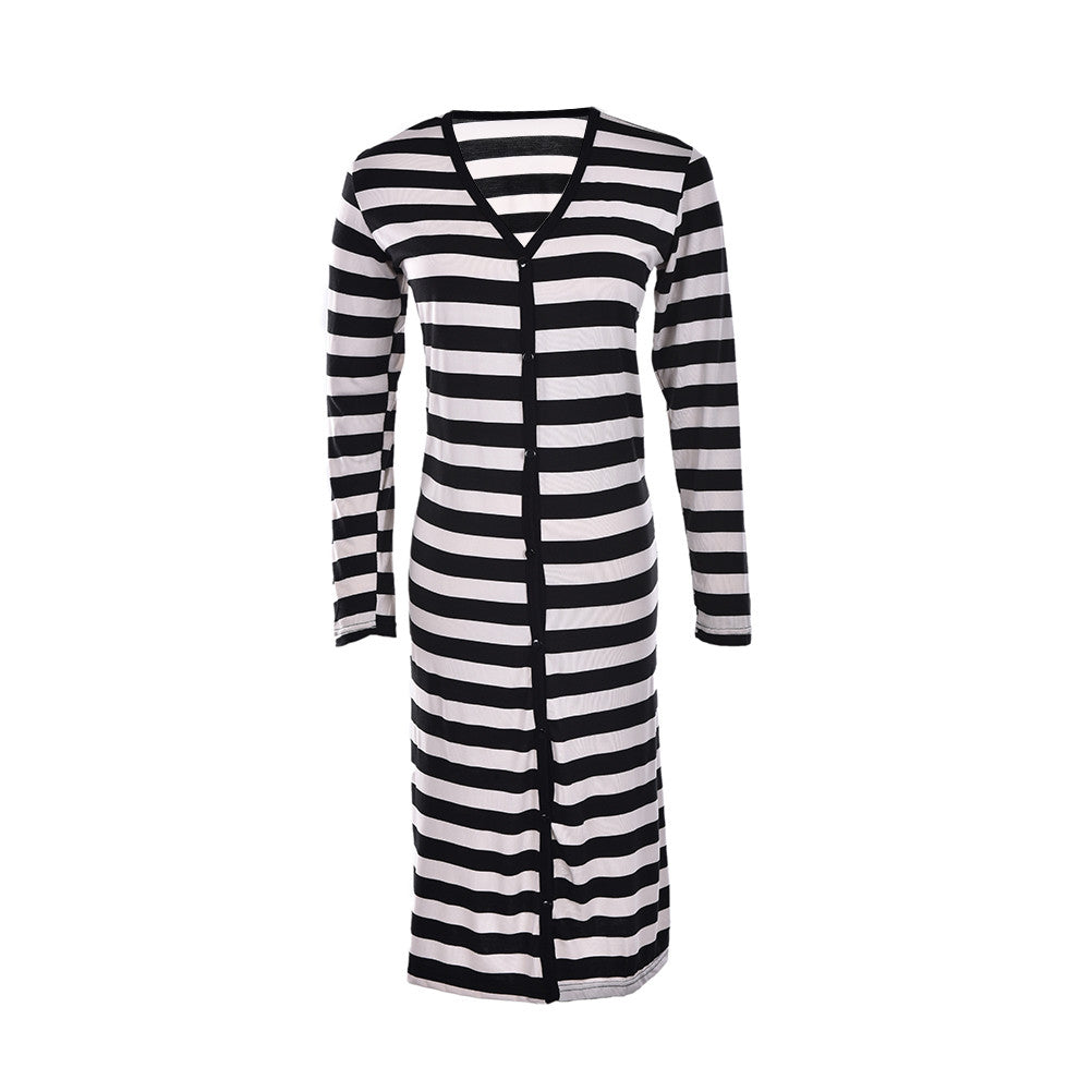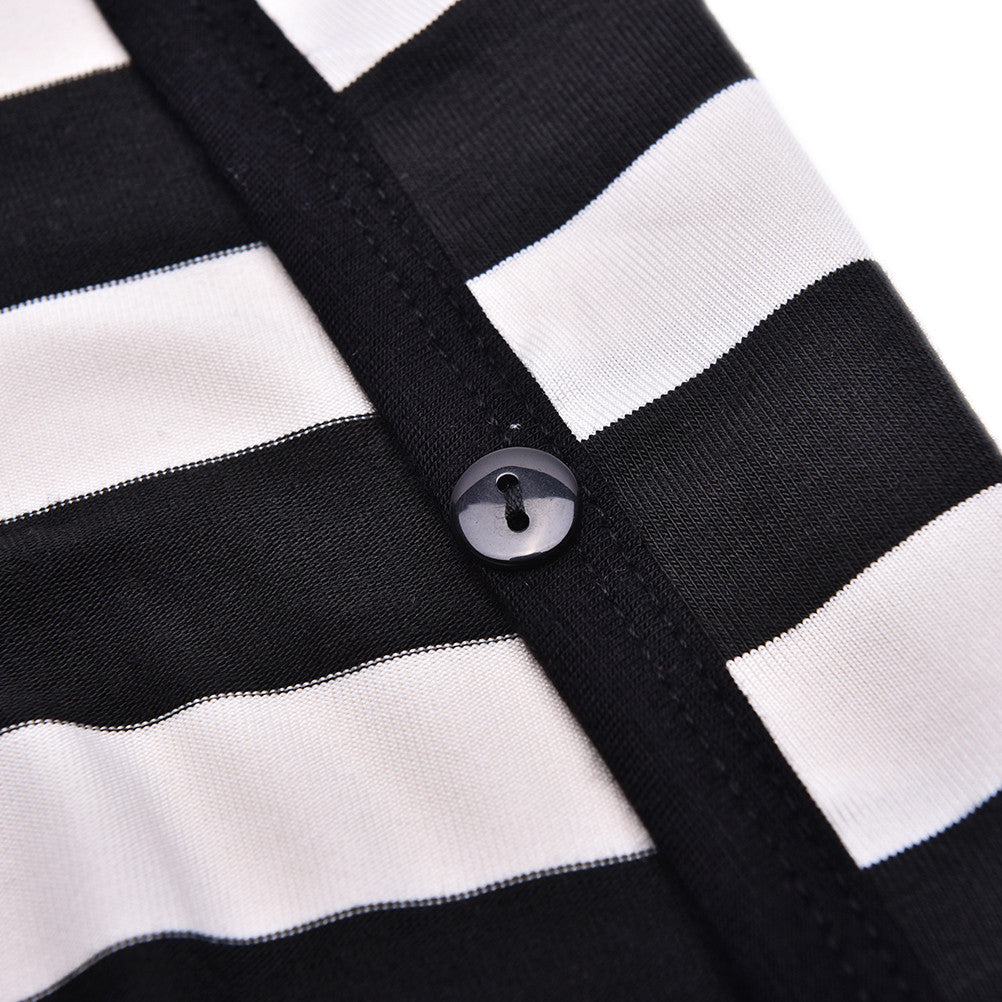 Black & White Striped Long Sleeve Knitted Open Cardigan Fall Slim Women Sweater J4U66