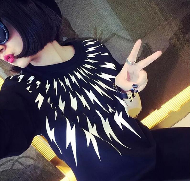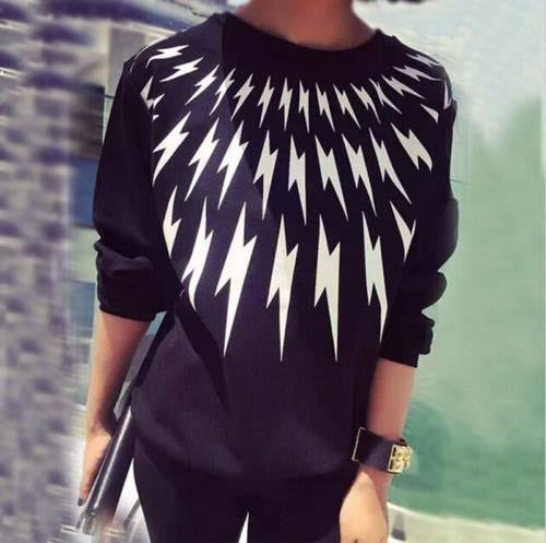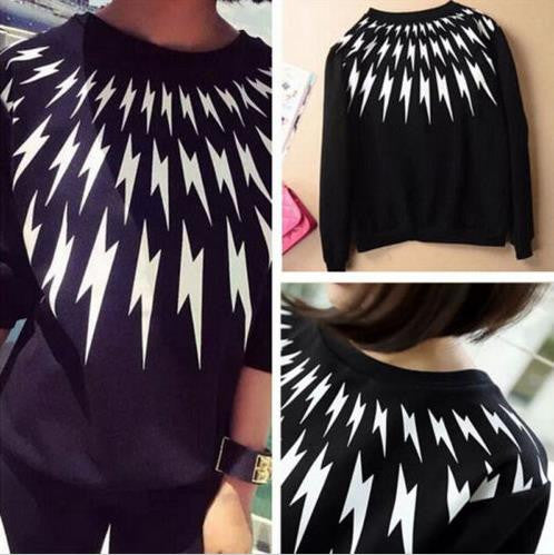 Black Women Lightning Printed Hoodies Outwear Pullover Tracksuit Sweatshirts J4U66