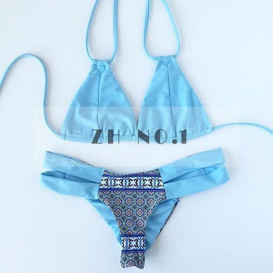 blue halter style bikini and sexy position print swimwearbandeau women beachwear n112zn J4U66