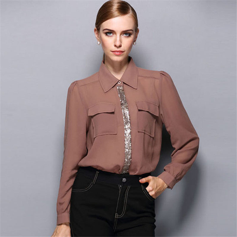 Blusas Femininas Sexy Women Sheer Shirts Dress Long Sleeve Pocket Casual Blouse Tops Plus Size S-XL For Women J4U66