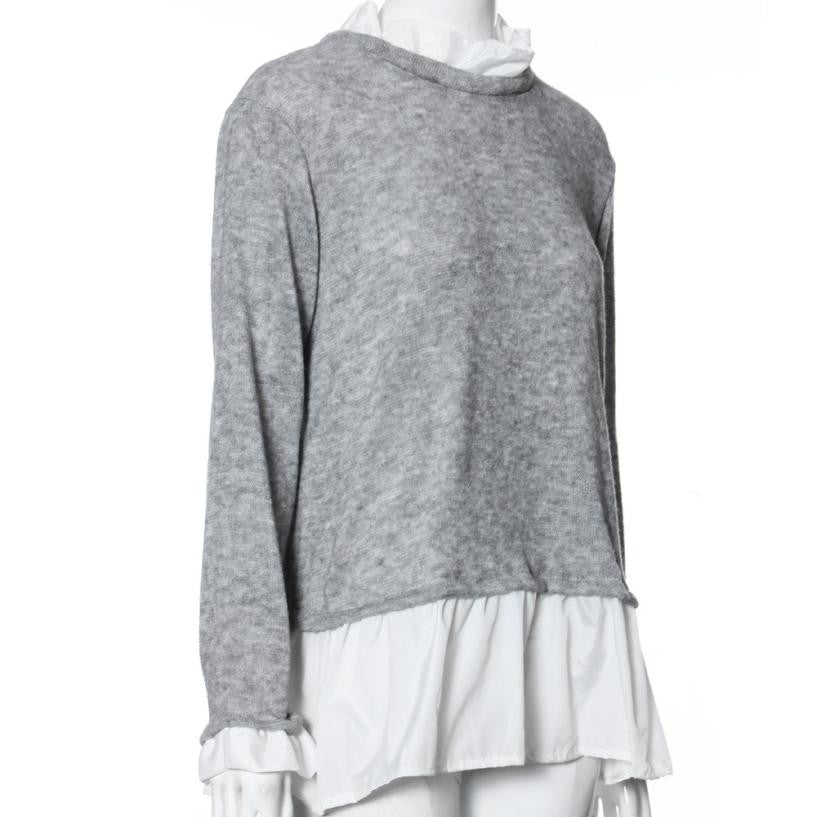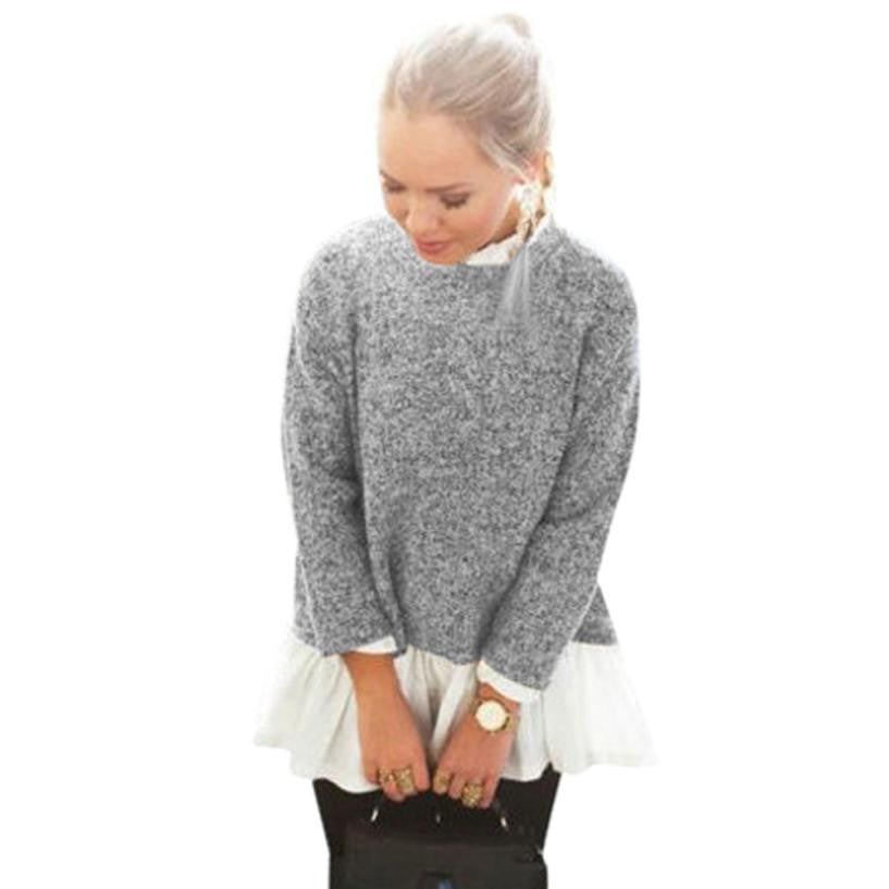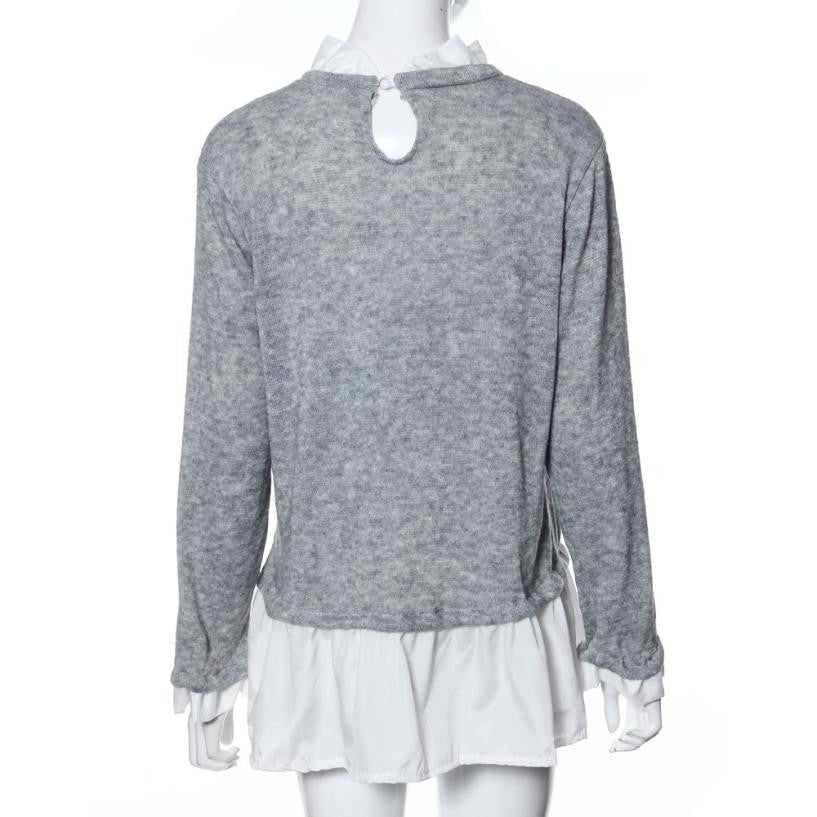 Blusas Women Casual Long Sleeve Loose Ladies Tops Shirt Gray O Neck Solid Blouse Plus Size S-XL J4U66