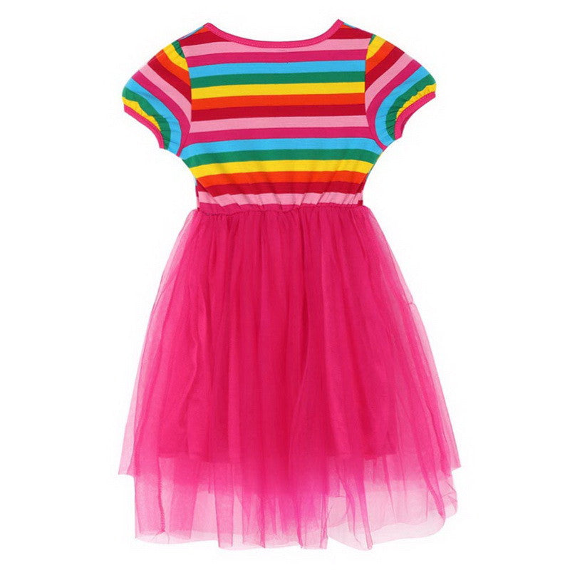 bobora kids baby girl rainbow striped tutu dresses girls top party dress outfit clothes J4U66