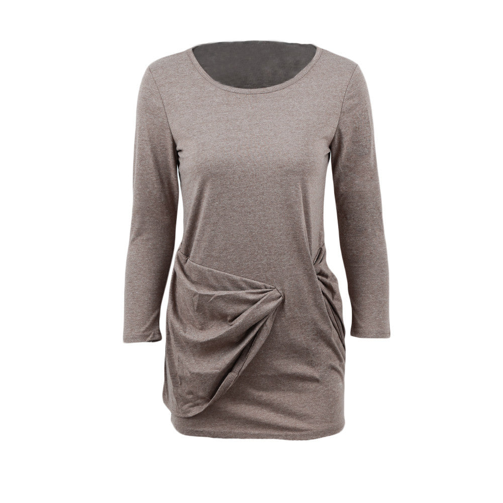 bodycon women sexy dress round neck 3/4 sleeve twist front night club mini party dresses plus size vestidos coffee J4U66