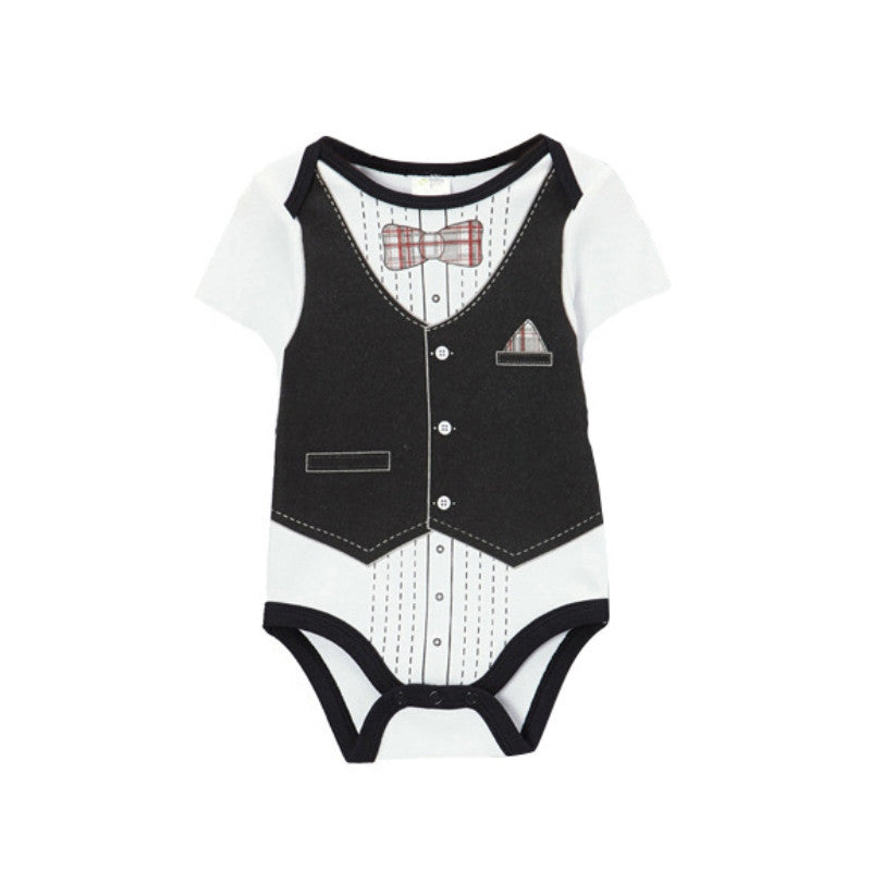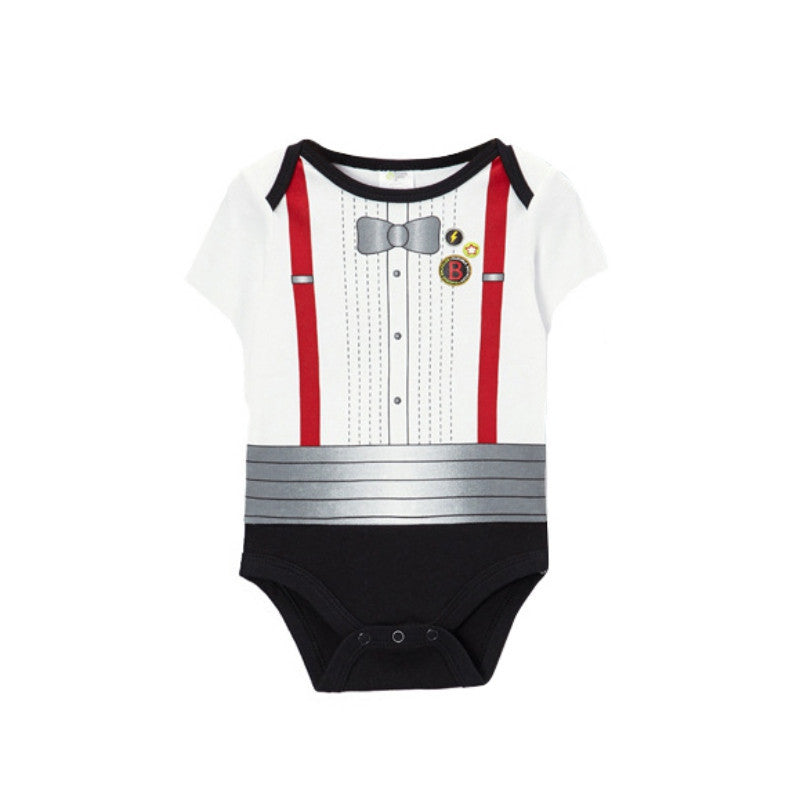 Boys Girls Special Fake Coat Print Rompers Toddler Cotton Gentleman Jumpsuit Clothes J4U66