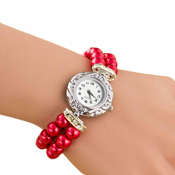 Bracelet Watch Women Ladies Students Fashion Quartz-watchClock Imitation Golden Pearl Chain Wrist Watches Quartz J4U66