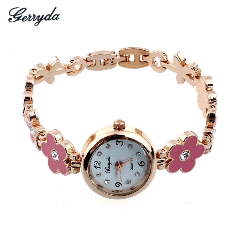 Brand Watches Elegant Flowers Diamond Woman Dress Alloy Strap Bracelet Quartz Watch Womens Wrist Watch lady watches J4U66